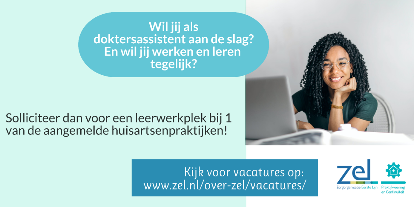 De eerste stappen van de sollicitatieprocedure verlopen via Zorgorganisatie Eerste Lijn (ZEL). Hiermee ondersteunen wij de deelnemende huisartsenpraktijken. Wij stellen jou voor aan een deelnemende praktijk in de plaats(en) die je hebt opgegeven. Daar ga jij op klikgesprek en loop je eventueel een ochtendje mee. Zijn jullie een goede match? Dan kom je bij de praktijk in dienst op een leerwerkovereenkomst.