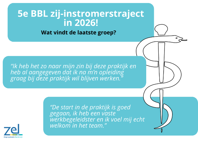 Kies je voor zij-instromer via het ZEL-traject dan betekent het bovendien dat je niet zelf hoeft te werven en selecteren. ZEL pakt de werving op via social media, Indeed, advertenties in kranten en verzorgt de selectie tot en met de matching met jullie als praktijk.