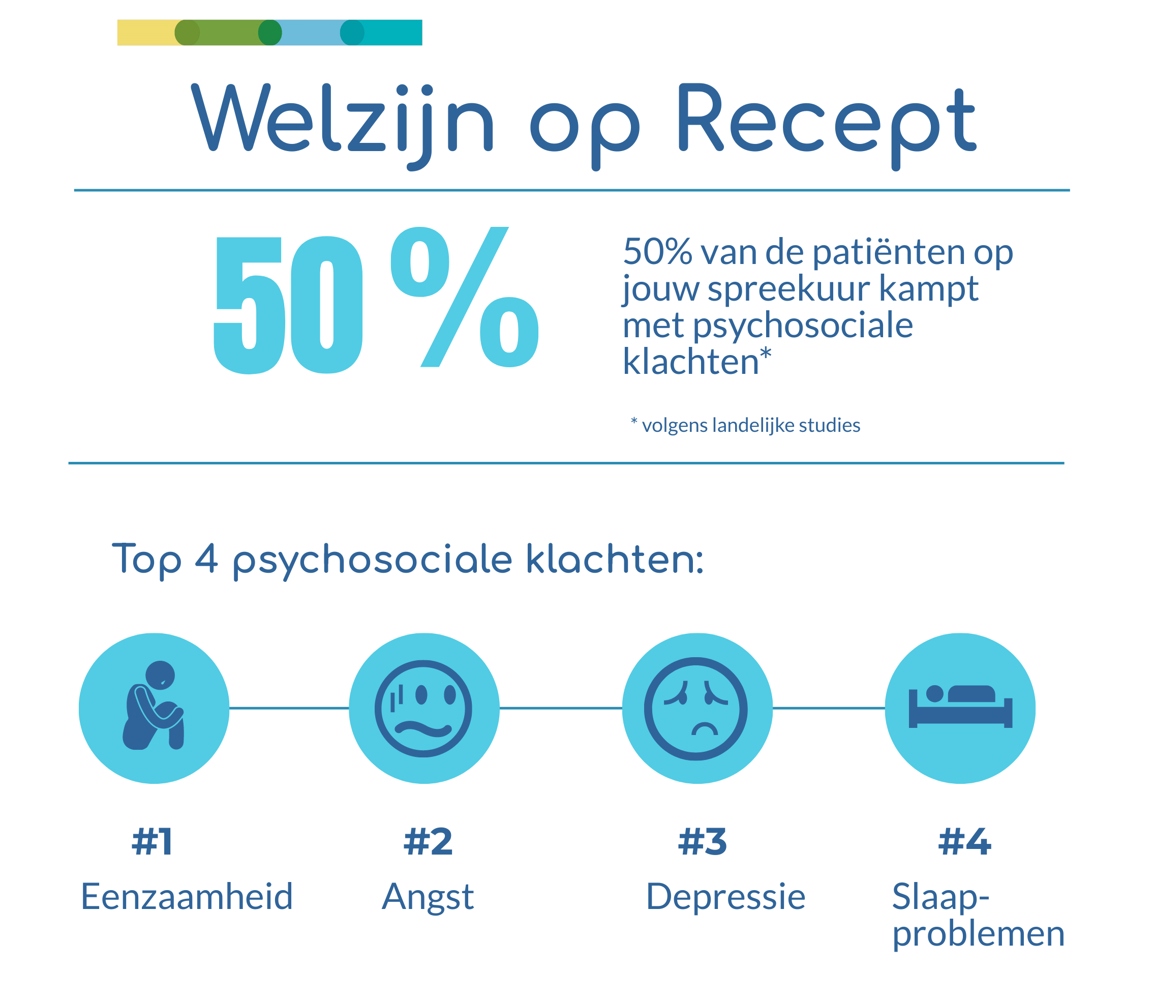 Mensen met psychosociale klachten maken over het algemeen vaker gebruik van eerstelijnszorg. Voor deze klachten is vaak niet (alleen) medische of psychologische zorg noodzakelijk. Welzijn op Recept kan dan uitkomst bieden!Zo geven deelnemers aan Welzijn op Recept bijvoorbeeld aan een toename te ervaren in eigen kracht, zelfvertrouwen, zelfredzaamheid en sociale contacten. Vaak ervaren ze daardoor ook een betere gezondheid.