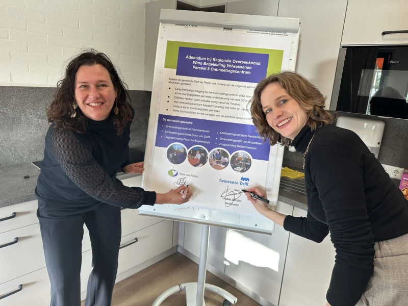 Delftse ouderen hebben vanaf heden geen Wmo-indicatie meer nodig om deel te kunnen nemen aan de activiteiten van ontmoetingscentra van Pieter van Foreest. Hierdoor kunnen ze veel gemakkelijker en sneller terecht bij één van de ontmoetingscentra, zonder tijdrovende papierwinkel vanwege indicaties. Voor oudere en jongere mensen met geheugenproblemen en/of verminderde regie is dat goed nieuws. Op 12 februari hebben Wethouder Joëlle Gooijer van Jeugd, Onderwijs, Ouderen en Armoede en Petra de Jongh, voorzitter raad van bestuur Pieter van Foreest hun handtekening onder deze nieuwe werkwijze gezet.
