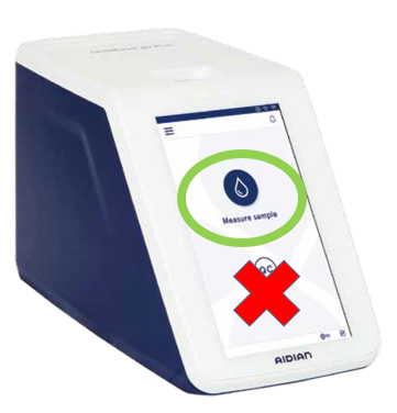HoofdmenuIn het hoofdmenu zijn 2 knoppen groot zichtbaar, zie plaatje. Gebruik altijd de bovenste knop “Monster meten” voor patiëntmateriaal. Door deze knop te gebruiken kom de uitslag van het onderzoek automatisch in uw systeem terecht.